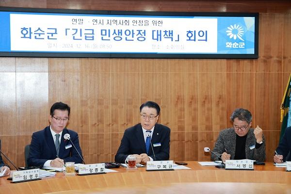 화순군(군수 구복규)은 탄핵 소추 의결로 인한 민생 불안을 최소화하고 내수경기 침체 극복 등 군민 생활안정에 총력을 기울이기 위해 ‘민생안정 대책반’을 운영한다.