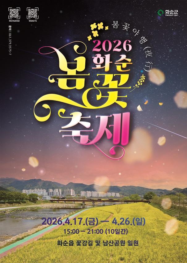 화순군(군수 구복규)은 ‘2026 화순 봄꽃 축제’를 앞두고, 축제장을 찾는 방문객들에게 다양한 지역 먹거리를 선보일 음식 부스 운영자를 모집한다고 6일 밝혔다.