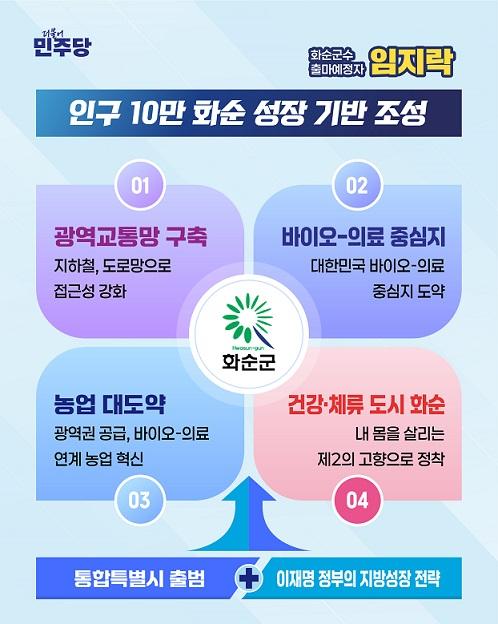 □ 임지락 전라남도의원(화순1, 화순군수 출마예정자)은 17일 오전 정책시리즈 2편으로 ‘인구 10만 화순을 위한 4대 성장 전략’을 발표하였다.