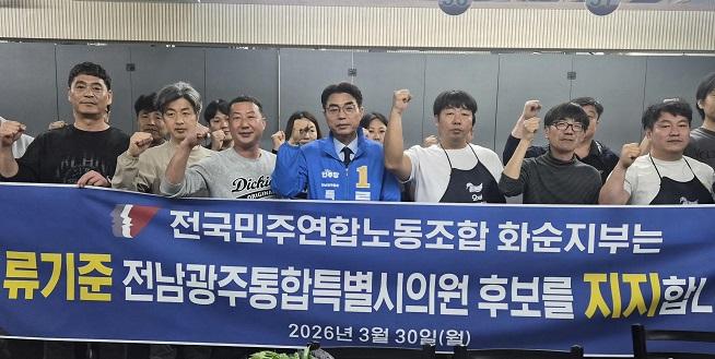 전국민주연합노동조합 화순지부(지부장 강기천)가 6·3 지방선거를 앞두고 류기준 전남광주통합특별시의원 후보에 대한 공식 지지를 선언했다.
