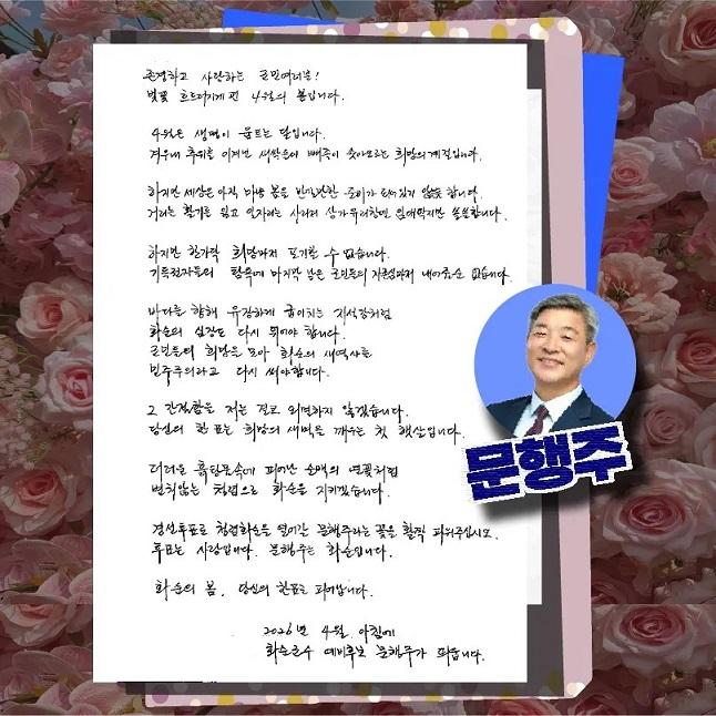 문행주 후보, ‘4월의 손 편지’ 공개, 청렴과 희망의 메시지 전해
